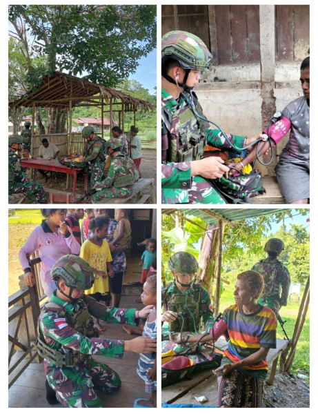 Satgas Pamtas Kewilayahan RI-PNG Yonif 642/Kps Pos Rawara Laksanakan Pelayanan Kesehatan