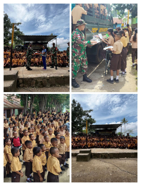 Kegiatan ini dihadiri oleh Kepala Sekolah, Ibu Erni Yosanti Tabun, S.Pd.SD, serta sejumlah pejabat Satgas, di antaranya Komandan SSK II, Kapten Arh Kasman Efendi, dan Perwira Seksi Teritorial, Lettu Arh Kharis Dwiyantoro, beserta staf teritorial dan anggota Pos Haumeniana.
