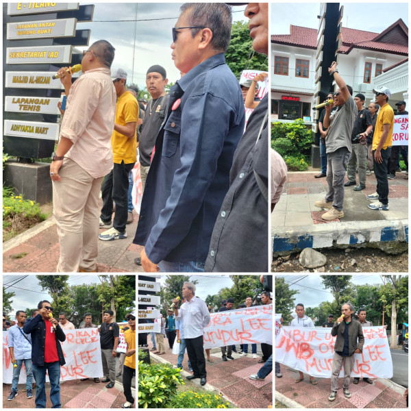Dalam orasi nya Halili mengatakwn bahwa NH telah di tetapkan sebagai tersangka oleh Kejari Banyuwangi atas kasus korupsi Mamin fiktif sejak tahun 2022