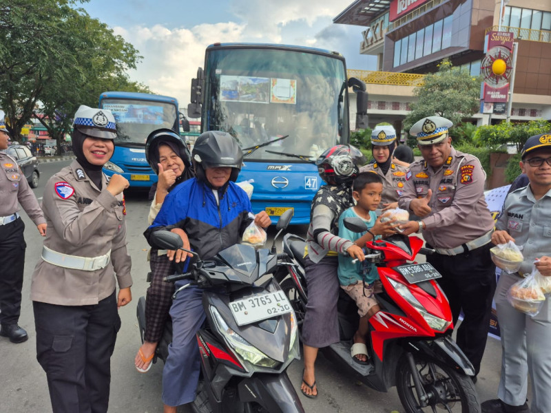 Kegiatan berbagi takjil tersebut merupakan rangkaian kegiatan Operasi Tertib Ramadhan Lancang Kuning 2025 yang dimulai dari Pukul 16.00 WIB.