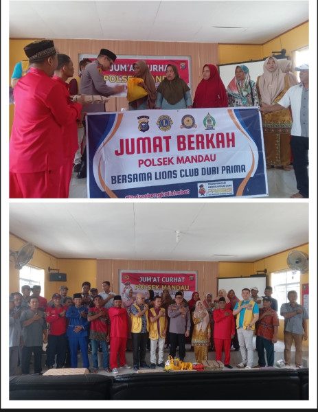 Jumat berkah, Kapolsek Mandau AKP Primadona bersama lions grup duri prima