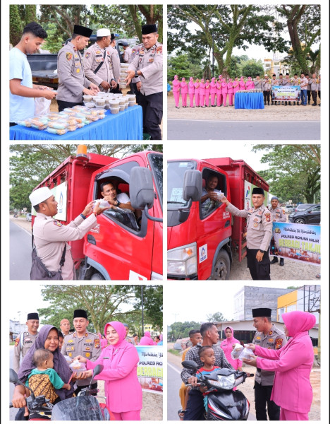 Pembagian Takjil Personil Polsek Rimba Melintang dan Bhayangkari Polsek Rimba Melintang Polres Rokan Hilir, sebagai bentuk wujud kepedulian Polri terhadap masyarakat.