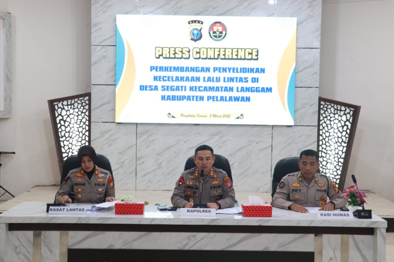 Kapolres Pelalawan AKBP Afrizal Asri SIK didampingi Kasat Lantas AKP Enggarani Laufria SIK dan Kasi Humas AKP Edi Haryanto SH.menyampaikan tim dari penyidik dan satlantas Polres Pelalawan telah melakukan penyelidikan. Begitu juga dengan memeriksa sejumlah saksi-saksi untuk menambah data data penyidikan ini.