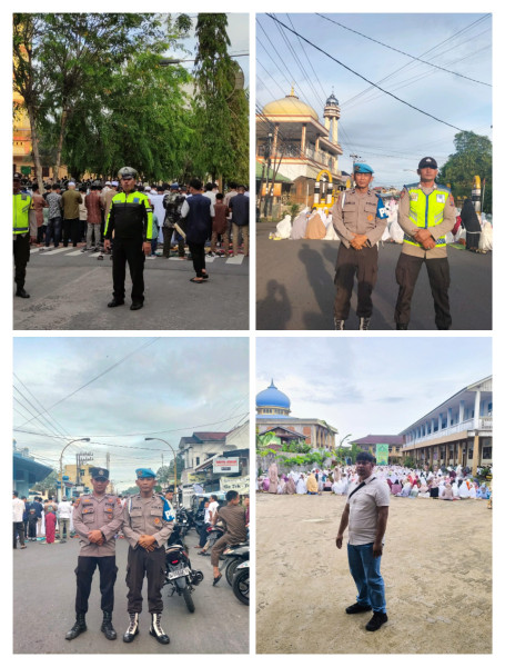“Pagi hari sebelum Masyarakat datang ke lokasi tempat Sholat Ied, Anggota Polri sudah berada di tepi jalan atau lokasi untuk melaksanakan pengaturan arus lalu-lintas dan membantu menyeberangkan Masyarakat,” pungkasnya.