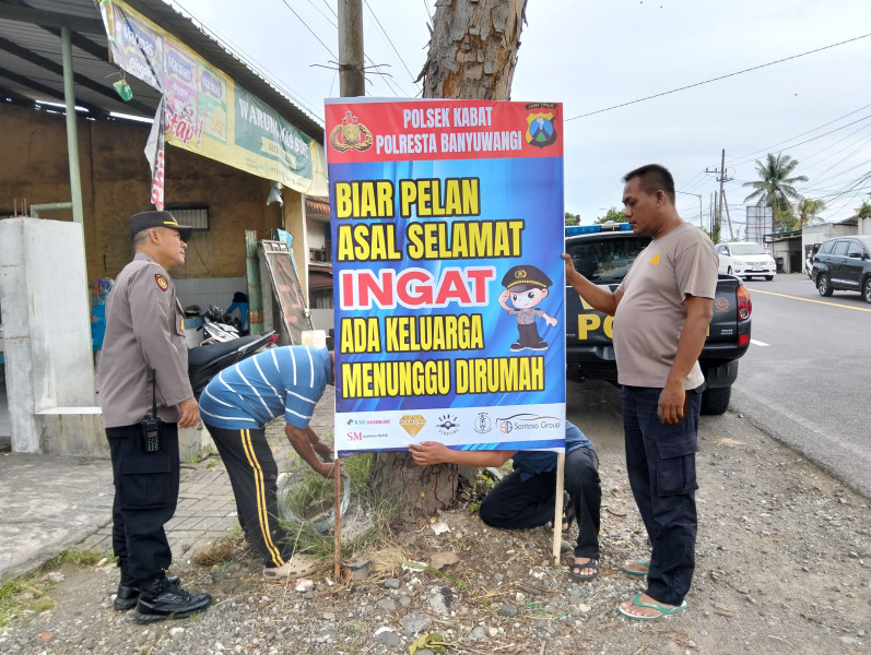 Banyuwangi, indonesiaclik.com || Pada Jumat, 21 Maret 2025, pukul 13.00 WIB hingga selesai, Kapolsek Kabat, AKP Kusmin, S.H., bersama anggota melaksanakan pemasangan banner peringatan dan imbauan kepada masyarakat jelang mudik Lebaran 2025. Banner tersebut dipasang di sepanjang jalur rawan kecelakaan lalu lintas di wilayah Polsek Kabat, Polresta Banyuwangi.
