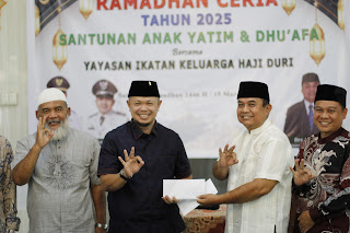 Penyerahan santunan anak yatim dan dhuafa bersama Ikatan Keluarga Haji Duri di Masjid Pesantren Al-Jauhar pada Bulan Ramadhan 1446H ini, menyantuni sebanyak 108 Anak Yatim dan Dhuafa yang berada di Pesantren Al-Jauhar Kecamatan Mandau.