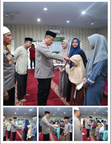 ROHIL, indonesiaclik.com || Polres Rohil melanjutkan kegiatan wujud kepedulian Polri terhadap masyarakat selama bulan Ramadhan 1446. H. Dedikasi yang dilakukan menyantuni sejumlah yatim – piatu. Kegiatan ini di gelar di Masjid Al-Ihklas Polres Rohil yang terletak di Kelurahan Banjar XII Kecamatan Tanah Putih Kabupaten Rohil. Senin 24 Maret 2025 Pukul 17.50 WIB