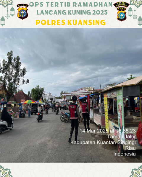 Kapolres Kuantan Singingi AKBP Angga F. Herlambang, S.I.K., S.H., melalui Kasat Samapta Polres Kuansing AKP Repriadi, S.E., menyampaikan “Patroli difokuskan pada beberapa titik strategis yang menjadi pusat aktivitas masyarakat, terutama Pasar Ramadhan atau pasar kaget yang berlokasi di sekitar Kota Teluk Kuantan serta kawasan Taman Jalur. Kehadiran polisi bertujuan untuk memastikan keamanan masyarakat dalam menjalankan aktivitas jual beli di pasar, sekaligus mengantisipasi potensi gangguan kamtibmas, seperti pencopetan, aksi premanisme, maupun kemacetan akibat meningkatnya mobilitas warga menjelang waktu berbuka puasa,” ujar Kasat.
