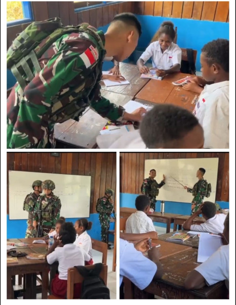 Kaimana, indonesiaclik.com || Satgas Pamtas RI-PNG Kewilayan Papua Barat Yonif 642/Kapuas Pos Yamor DPP wadanpos Serda Putra Andika melaksanakan kegiatan Gadik di SD Negeri Ururu, Distrik Yamor, Kabupaten Kaimana, Provinsi Papua Barat. (13/3/2025)