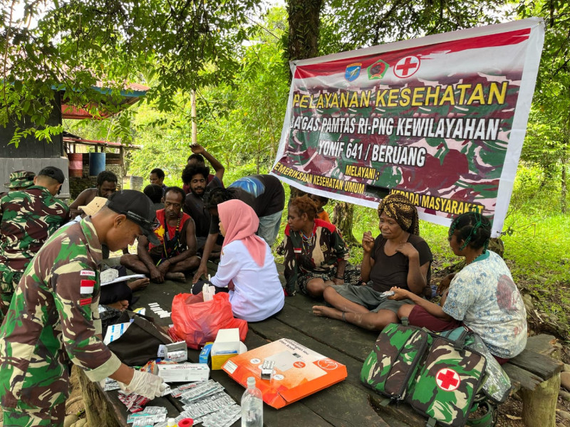 Jayapura , indonesiaclik.com ll Dalam upaya meningkatkan layanan kesehatan bagi masyarakat pedalaman, Pos Muaranawa Satgas Yonif 641/Bru bersama Koramil setempat dan Puskesmas mengadakan kegiatan pelayanan kesehatan di Kampung Apiaru, Distrik Airu, Kabupaten Jayapura, Provinsi Papua, (01/03/2025).