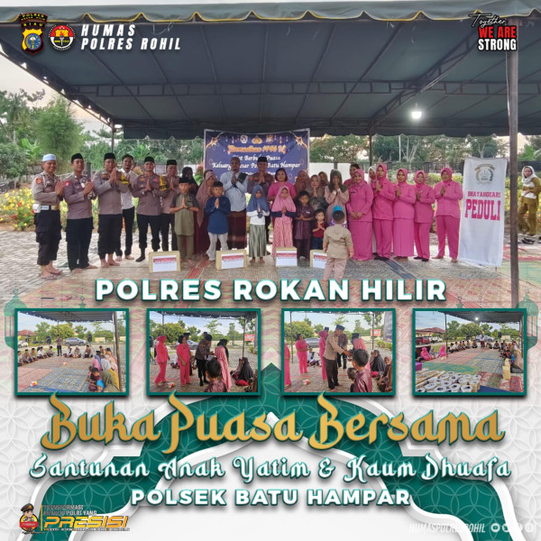 Polsek Batu Hampar Polres Rohil telah melaksanakan kegiatan buka puasa bersama sekaligus pemberian bingkisan kepada Dhuafa dan anak yatim di Mapolsek Batu Hampar. Kegiatan ini dilakukan sebagai bentuk kedekatan Polri dengan masyarakat guna terciptanya Citra Polri yang positif di tengah Masyarakat.