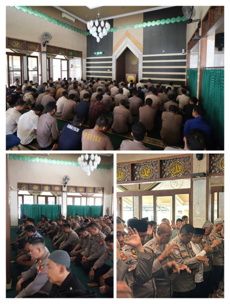 Sholat gaib dilaksanakan di Masjid Rhoudlotul Jannah, Polresta Banyuwangi, seusai shalat dzuhur,pada Selasa (18/3/2025).