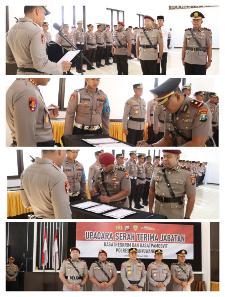 Banyuwangi ,indonesiacllik.com ll Polresta Banyuwangi menggelar upacara serah terima jabatan sejumlah pejabat pada Senin (22/04/2025) pagi, bertempat di Gedung Rupatama Wira Pratama Polresta Banyuwangi.