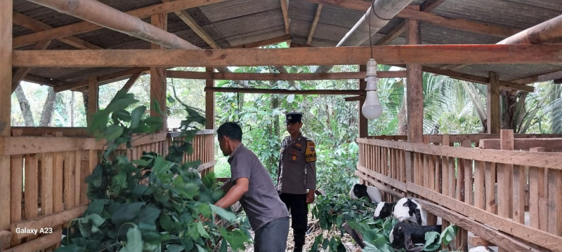 “Kami hadir untuk memberikan pendampingan kepada peternak agar usahanya dapat berjalan dengan baik. Selain itu, kami juga mengingatkan agar lingkungan sekitar peternakan tetap bersih untuk mencegah penyebaran penyakit,” ujar Bripka Ahmad Fanani