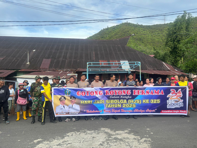SIBOLGA , indonesiaclik.com ll Dalam rangka merayakan Hari Jadi Kota Sibolga yang Ke-325 Tahun 2025, Masyarakat bersama jajaran TNI dan Polri, serta Pemko Sibolga melaksanakan kegiatan gotong royong di Sungai Aek Doras, Kelurahan Angin Nauli, Kecamatan Sibolga Utara, Kota Sibolga. Kegiatan ini dilaksanakan pada Kamis, 10 April 2025, mulai pukul 07.30 WIB hingga selesai.