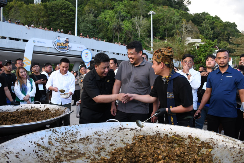 Sumut, indonesiaclik.com ll Gubernur Sumatera Utara (Sumut), Muhammad Bobby Afif Nasution bersama Bupati dan Wakil Bupati se Kawasan Danau Toba termasuk Bupati Samosir, Vandiko Timotius Gultom menghadiri acara masak besar YouTuber Bobon Santoso di Pantai Bebas, Parapat, Kecamatan Girsang Sipangan Bolon, Kabupaten Simalungun, Kamis (17/4)