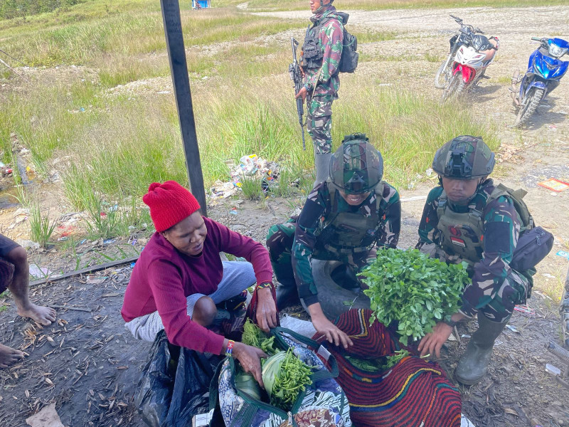 Tak hanya sekadar membeli, para prajurit juga menyempatkan waktu bercengkerama, mendengarkan cerita warga, dan bahkan membantu mengemas hasil tani. Kedekatan ini menjadi bukti nyata bahwa kehadiran TNI di Papua bukan hanya sebagai penjaga keamanan, tetapi juga sebagai sahabat dan mitra dalam membangun kehidupan yang lebih baik.