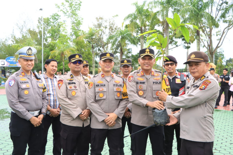 “Bibit pohon ini diharapkan dapat menjadi pengingat bahwa setiap pribadi memiliki peran penting dalam menjaga kelestarian alam serta memberikan kontribusi positif bagi lingkungan sekitar,” ujar AKBP Eka Ariandy Putra dalam sambutannya.