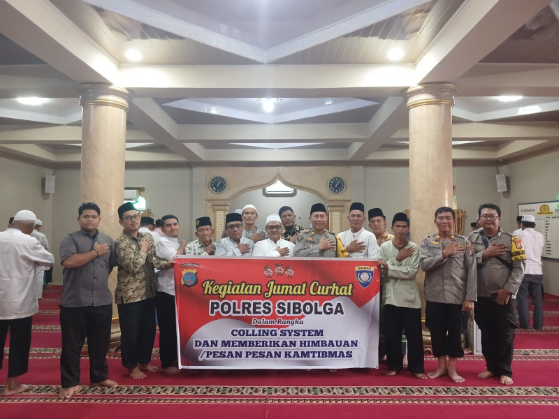 SIBOLGA , indonesiaclik.com ll Untuk lebih mendekatkan diri kepada Masyarakat dan mendengarkan keluhan mereka secara langsung, Kapolres Sibolga AKBP Eddy Inganta, SH, SIK, MH, yang diwakili Kapolsek Sibolga Selatan AKP Pennedi Sihotang, Kasat Binmas Polres Sibolga AKP Martua Sinaga, Kasihumas Polres Sibolga AKP Suyatno dan Kasium Polsek Sibolga Sambas IPDA HB. Siagian, mengadakan kegiatan “Jumat Curhat” di Masjid Taqwa Muhammadiyah Aek Manis Sibolga, Jalan KHA. Dahlan Kelurahan Aek Manis Kecamatan Sibolga Selatan, Kota Sibolga, Jumat (18/04/2025).