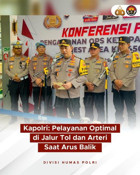 Jakarta, indonesiaclik.com || Kapolri: Pelayanan optimal di jalur tol dan arteri saat arus balik. Kapolri Jenderal Polisi Drs. Listyo Sigit Prabowo, M.Si., meninjau persiapan arus balik Lebaran 2025 di rest area KM 456 Tol Semarang-Solo, Jawa Tengah, Sabtu (5/4). Ia mengapresiasi fasilitas lengkap di rest area yang disediakan secara gratis untuk dinikmati pemudik. Selain itu, Kapolri juga mengecek pengelolaan rekayasa lalu lintas khususnya di perjalanan arus mudik dan persiapan arus balik. Kapolri pun menyampaikan pihaknya akan melaksanakan rekayasa lalu lintas one way nasional pada Minggu (6/4) yang diprediksi menjadi puncak arus balik.