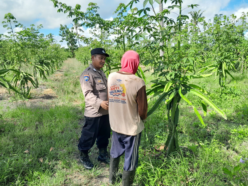 Bhabinkamtibmas Bripka Paryiadi,S.H. melakukan kunjungan dan pedampingan kepada warga yang membudi daya tanaman buah Naga dilahan pekarangan rumaah.