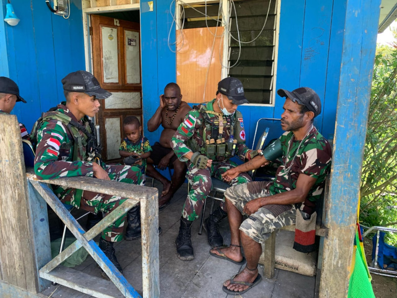 Selain menjalankan tugas pokok menjaga keamanan di wilayah Distrik Kobakma, Pos Kobakma juga memberikan bantuan tenaga kesehatan terhadap warga untuk mempererat hubungan baik dengan masyarakat sekitar.