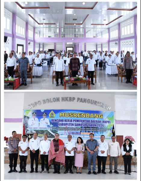 Musrenbang RKPD Pemerintah Kabupaten Samosir tahun 2026 mengangkat Tema “Transformasi Pembangunan Sumber Daya Manusia Dibidang Pertanian, Pariwisata, Ekonomi Kreatif Berbasis Pemberdayaan Masyarakat”.