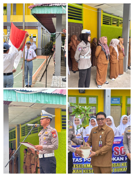 Kegiatan ini dipimpin oleh KBO Satlantas Polres Rokan Hulu IPDA Ade Eki Saputra, yang bertindak sebagai pembina upacara bendera. Dalam amanatnya, beliau menyampaikan pentingnya disiplin berlalu lintas di kalangan pelajar sebagai bentuk kepatuhan terhadap hukum dan upaya menciptakan budaya keselamatan di jalan raya sejak dini.