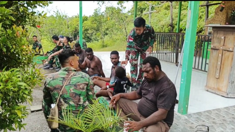 Jagiro, indonesiaclik.com || Pos Jagiro Satgas Pamtas RI-PNG Kewilayan Papua Barat Yonif 642/Kapuas DPP Danpos Jagiro Letda Inf Fadliansyah Siregar melaksanakan kegiatan karya bakti pembersihan gereja sekaligus baksos berbagi kacang hijau bersama masyarakat distrik Moskona Selatan khususnya kampung Jagiro.