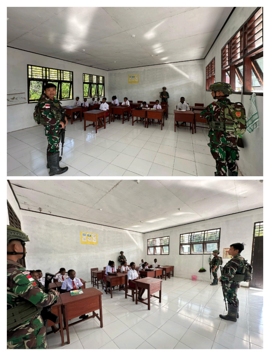 Ikut dan aktif membantu menjadi Tenaga Pendidik (Gadik), Kegiatan yang dilakukan Pos Masyeta ini disambut baik oleh kepala Sekolah dan para guru, ini adalah bentuk kepedulian Satgas dalam mendukung kegiatan belajar dan mengajar untuk memacu prestasi pelajar,” kata Serda APRIADI .