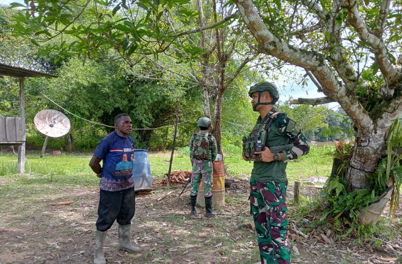 Teluk Bintuni , indonesiaclik.com ll Pos Rawara Satgas Pamtas RI-PNG Kewilayahan Papua Barat Yonif 642/Kps dibawah pimpinan Letda Inf Andi Arya Oddang, melaksanakan anjangsana di kediaman Bapak Seblon Orosomna, Kampung Irahima Distrik Moskona Selatan Kabupaten Teluk Bintuni Provinsi Papua Barat. (22/4/2025)