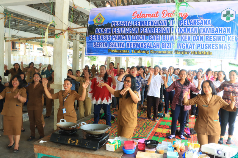 Program “Ramos Pantas”, Dinkes bersama Puskesmas Limbong melaksanakan Pembekalan Tim Pelaksana dalam Penyiapan Pemberian Makanan Tambahan (PMT) berbasis Pangan lokal bagi ibu hamil KEK dan risiko KEK serta balita bermasalah gizi di Tingkat Puskesmas. Pelatihan bagi Kader PMT digelar di Desa Aek Sipitudai-Kecamatan Sianjur Mula mula, 22/04.