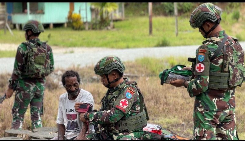 Teluk Bintuni , indonesiaclik.com ll Pos Masyeta Satgas Pamtas RI-PNG yonif 642/Kps Sebagai wujud kepedulian terhadap kesehatan Masyarakat Kp. Masyeta, yang di Lakukan oleh Satgas Yonif 642/Kps, Pos Masyeta DPP Sertu Rofif Selaku Bintara Kesehatan memberikan pelayanan kesehatan (yankes) keliling gratis kepada masyarakat di Kampung Masyeta , Distrik Masyeta, Kabupaten Teluk Bintuni, Papua Barat. (14/4/2025).