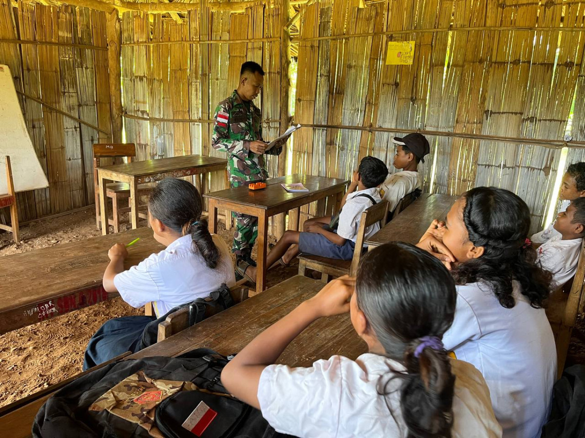 Amfoang Timur, 26 Mei 2025 – Dalam upaya mendukung dunia pendidikan di wilayah perbatasan, personel Satgas Pamtas RI–RDTL Sektor Barat dari Yonarhanud 15/DBY kembali menunjukkan perannya sebagai pendidik masyarakat. Kali ini, kegiatan Pengajaran Pendidikan (Gadik) dilaksanakan oleh personel Pos Oepoli Pantai yang dipimpin oleh Serda Asrobin bersama dua orang anggota pos, bertempat di SMP Negeri Amfoang, Dusun Tiga, Desa Netemnanu Utara, Kecamatan Amfoang Timur.