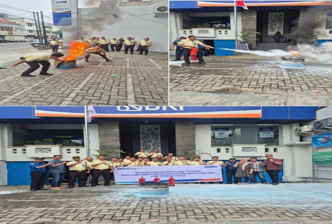 Medan , indonesiaclik.com ll Dalam rangka meningkatkan kesadaran dan kesiapsiagaan terhadap situasi darurat, Bank BRI Branch Office Medan Thamrin menyelenggarakan simulasi kebakaran jumat, 11 April 2025. Kegiatan ini diikuti oleh seluruh karyawan sebagai bagian dari pelatihan menghadapi kebakaran dan penanganan bencana alam.