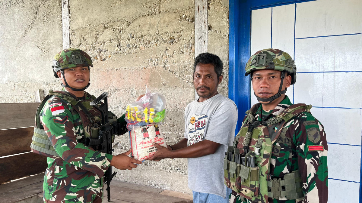 Satgas Yonif 642/Kps Bantu Warga Penuhi Kebutuhan Sehari-hari Dengan Berbagi Sembako di Kampung Warisa