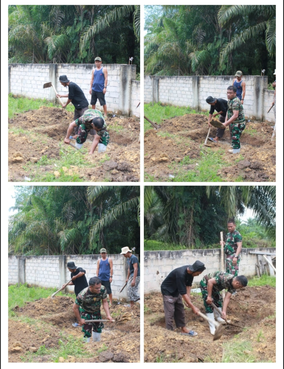 Memasuki pekan pelaksanaan TMMD, terlihat personel Satgas TMMD bersama warga Blok A bahu membahu dalam proses pembangunan MCK. Kegiatan yang berlokasi di Jalan Baru Blok A RT 14 ini menunjukkan progres yang menggembirakan. Material bangunan seperti bata, semen, pasir, dan perlengkapan sanitasi lainnya tampak sudah tersedia di lokasi, siap untuk dirakit menjadi fasilitas yang sangat dibutuhkan masyarakat.