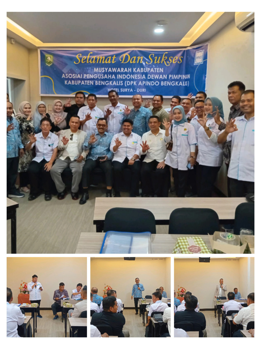 BENGKALIS, indonesiaclik.com ll Sabtu 14 Juni 2025, Asosiasi Pengusaha Indonesia (Apindo) menggelar musyawarah Dewan Pimpinan Kabupaten (DPK) Kabupaten Bengkalis untuk masa bakti 2025-2030 bertempat Aula Hotel Surya Duri Kecamatan Bathin Solapan Kabupaten Bengkalis Provinsi Riau pukul 10,00 wib