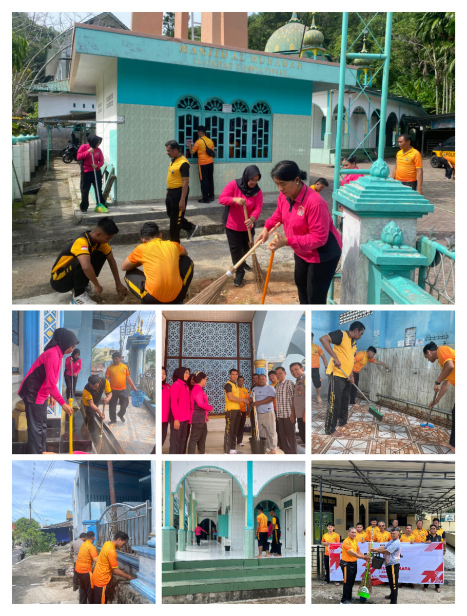 SIBOLGA, Indonesiaclik.com ll Dalam Rangka Hari Bhayangkara (HUT) Ke-79 yang jatuh pada 1 Juli 2025, Kepolisian Resor Sibolga (Polres Sibolga) menggelar Bakti Sosial (Baksos) membersihkan Masjid, di wilayah hukum Polres Sibolga, yang dipimpin oleh Kapolres Sibolga AKBP Eddy Inganta, SH, SIK, MH, bersama Ketua Bhayangkari Cabang Sibolga Ny. Laura Eddy Inganta, Waka Polres Sibolga, PJU dan Personel Polres Sibolga. Jumat, (13/06/2025) pukul 09.00 wib sampai selesai.