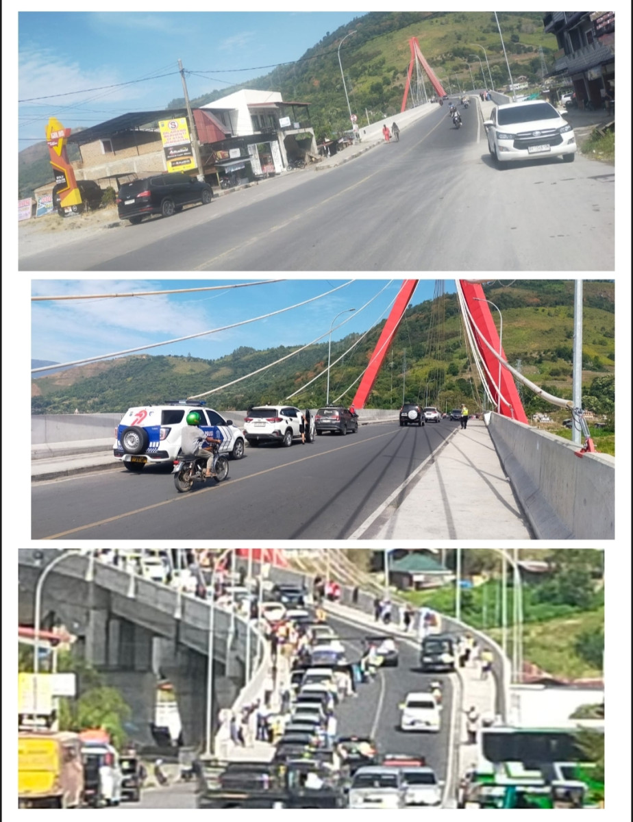 Tak lama berselang, satu unit mobil patroli lalu lintas bersama dua orang personel diturunkan ke Jembatan Tano Ponggol untuk mengatur lalu lintas dan mengimbau para pengunjung agar tidak parkir sembarangan.