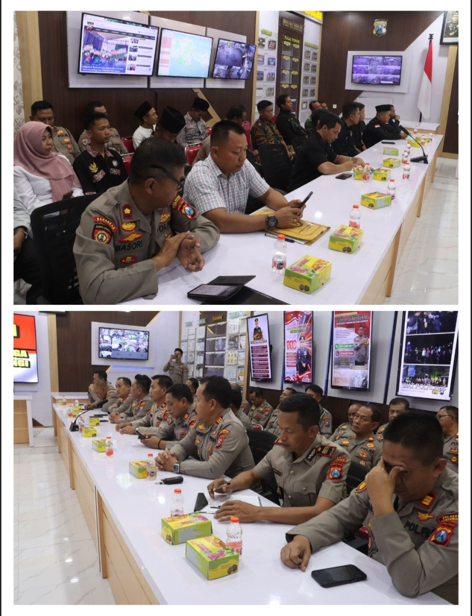Kapolresta Banyuwangi Kombes Pol. Rama Samtama Putra,S.I.K., M.Si., M.H., melalui Kabag Ops Kompol Idham Khalid menekankan pentingnya sinergi dan kesiapsiagaan seluruh unsur pengamanan guna mengantisipasi potensi gangguan kamtibmas selama prosesi wisuda dan kegiatan tasyakuran berlangsung.