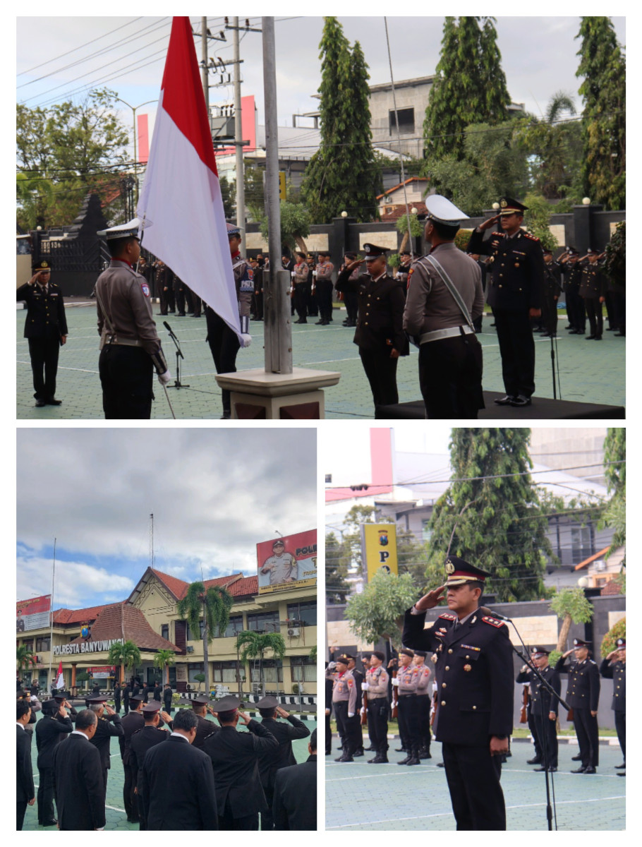 Upacara dilangsungkan di halaman Mapolresta dan dipimpin oleh Wakapolresta Banyuwangi, AKBP Teguh Priyo Wasono, S.I.K.