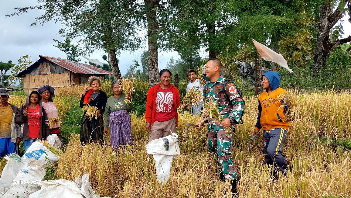 Satgas Pamtas RI–RDTL Yonarhanud 15/DBY Pos Haumeniana Bantu Warga Panen Padi di Perbatasan