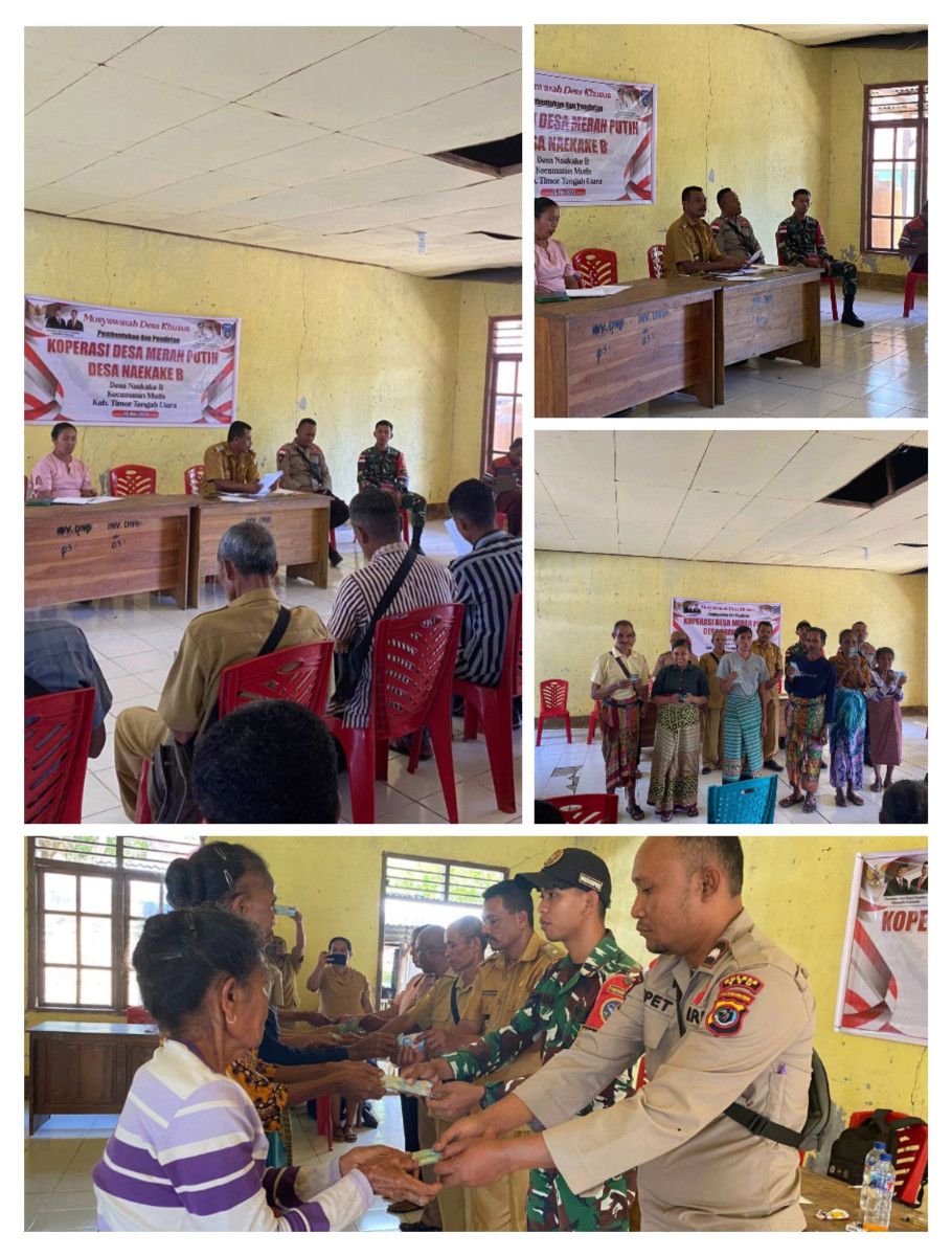 Naekake B, TTU, indonesiaclik.com ll 1 Juni 2025 – Sebagai bentuk dukungan terhadap program pemberdayaan ekonomi desa dan kesejahteraan masyarakat, personel Satgas Pamtas RI–RDTL Sektor Barat Yonarhanud 15/DBY dari Pos Naekake, yang dipimpin oleh Serda Hermantoro (Wadanpos Naekake) bersama dua orang anggota, menghadiri undangan resmi kegiatan pembentukan anggota Koperasi Merah Putih sekaligus pembagian Bantuan Langsung Tunai (BLT) di Kantor Desa Naekake B, Kecamatan Mutis, Kabupaten Timor Tengah Utara. Jumat (30/5)