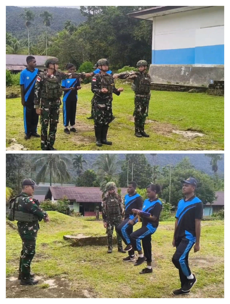 Kaimana ,indonesiaclik.com ll Satgas Yonif 642/Kps Pos Teluk Etna memberikan latihan baris berbaris kepada siswa SMP 1 Teluk Etna, Distrik Teluk Etna, Kabupaten Kaimana, Papua Barat. (17/6/2026)