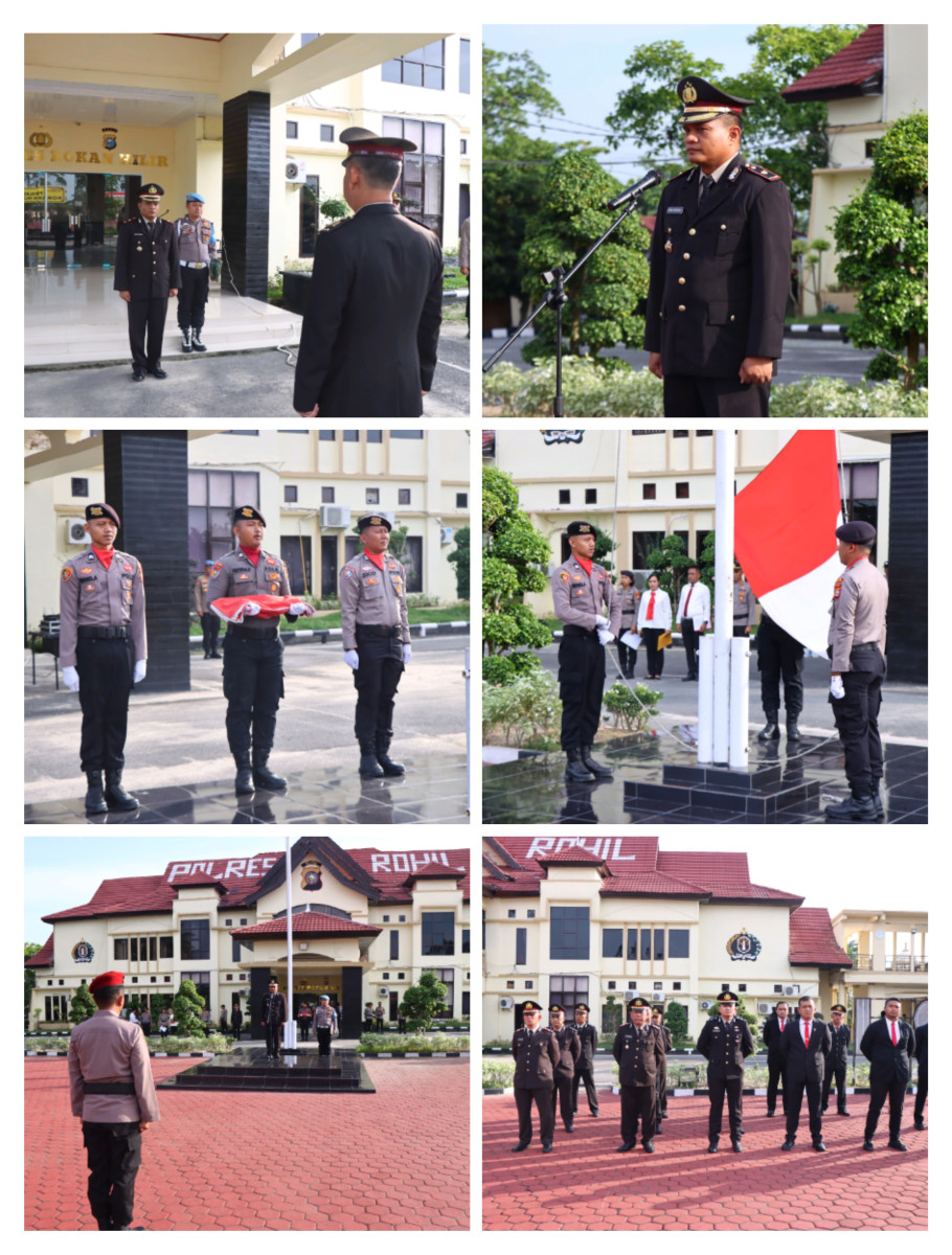 ROHIL , indonesiaclik.com ll Wakapolres Rohil Kompol Rikky Operiady S.Sos, S.I.K., M.IK. Mewakili Kapolres Rohil AKBP Isa Imam Syahroni S.I.K. M.M, menjadi Inspektur Upacara peringatan hari lahir Pancasila di Lapangan Mako Polres Rohil, Senin 02 Juni 2025 Pukul 07.30 WIB.