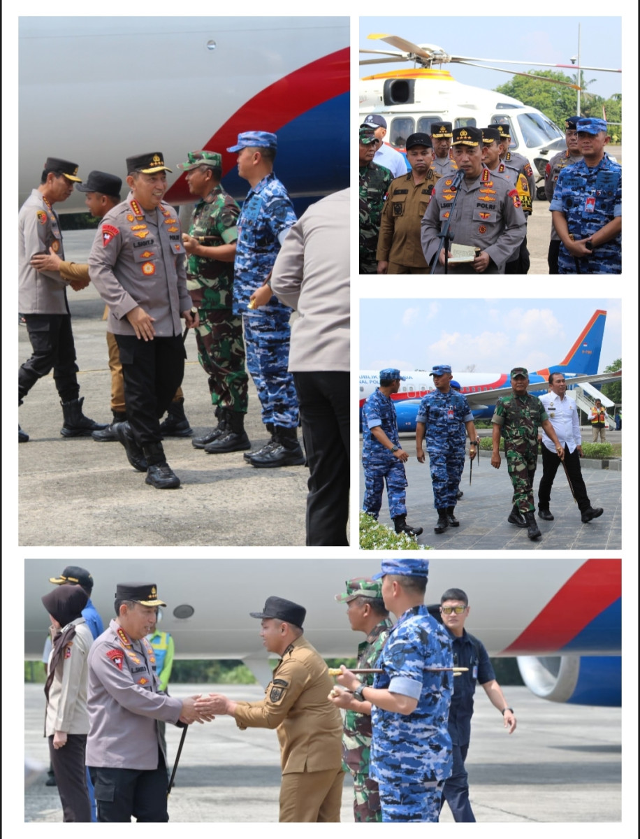 Setibanya di Lanud RSN, Kapolri disambut jajaran Forum Koordinasi Pimpinan Daerah (Forkopimda) Riau. Danrem 031/WB menyampaikan kesiapan jajaran TNI bersama stakeholder terkait dalam mendukung upaya pencegahan dan penanggulangan karhutla di lapangan.