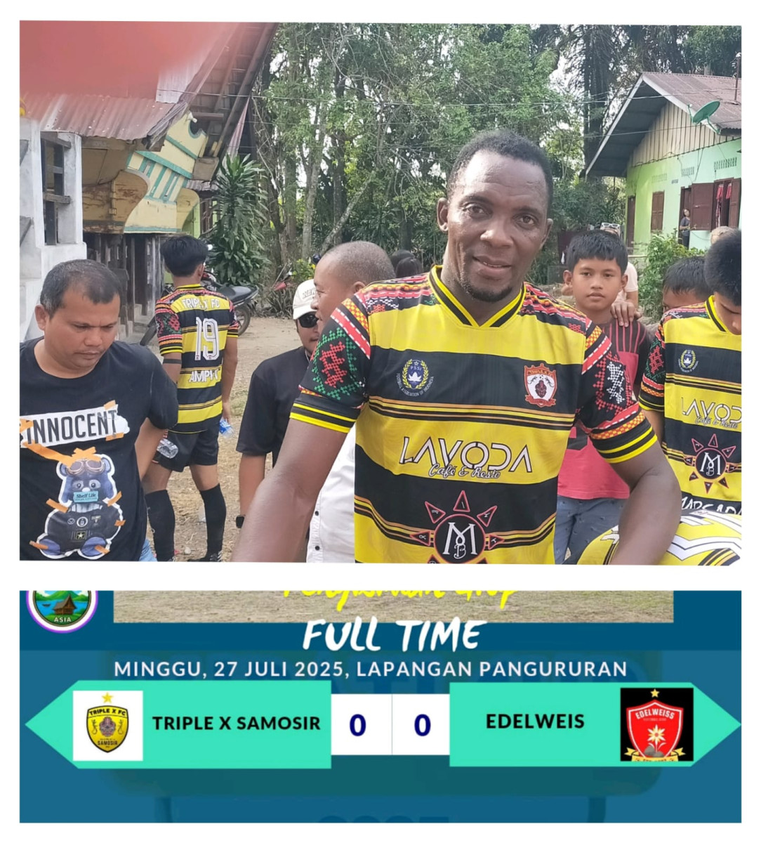 27 Juli 2025 — Laga seru tersaji di Tanah Lapang Pangururan pada Minggu sore saat Triple X FC berhadapan dengan Edelweys FC dalam lanjutan Bupati Cup III Samosir 2025. Pertandingan ini menjadi perhatian publik karena mempertemukan dua tim kuat asal Kecamatan Simanindo dalam derby panas yang sarat gengsi.