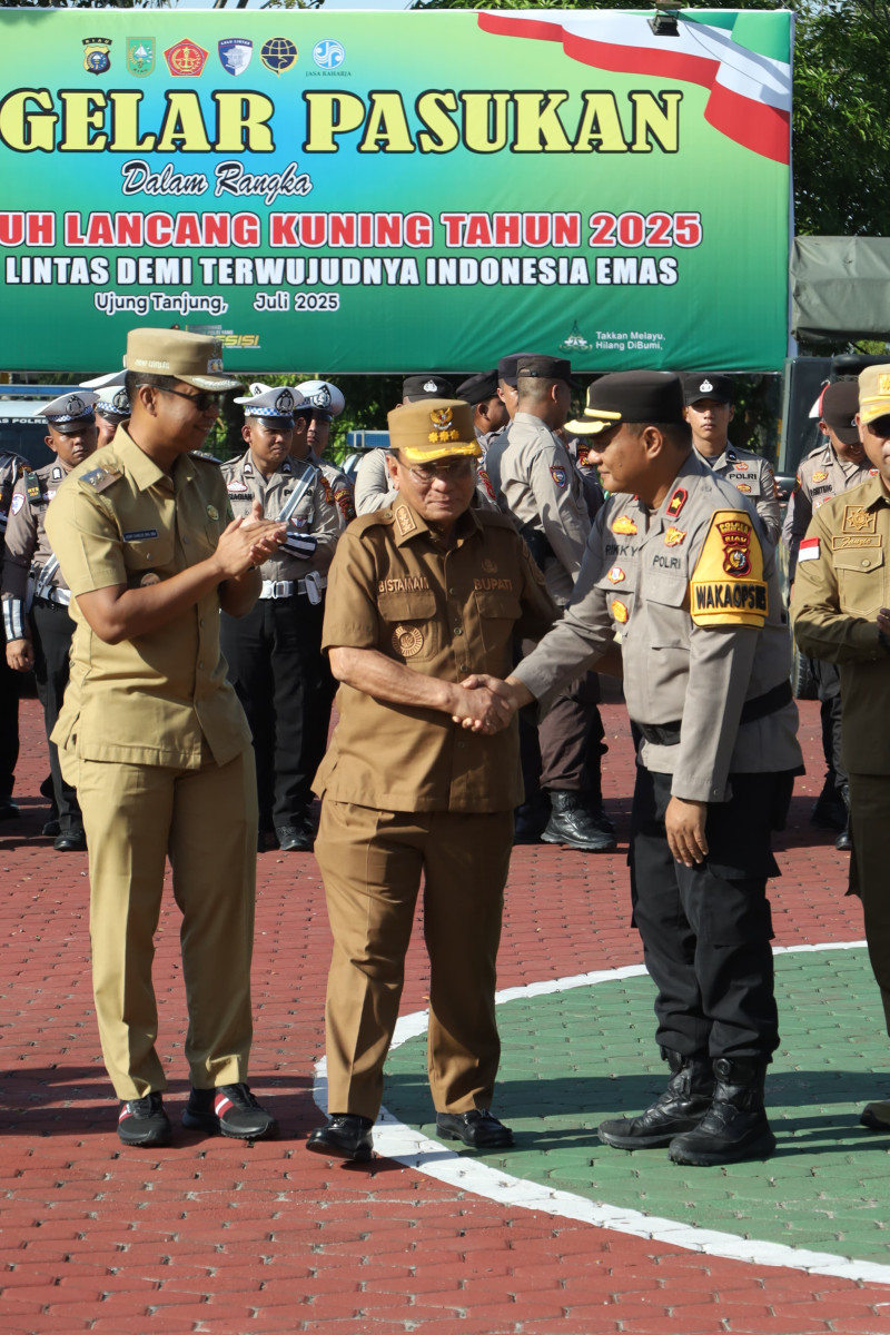 Sebelum mengakhiri sambutan ini, kepada seluruh jajaran, perlu saya tekankan kembali, selama pelaksanaan operasi, agar utamakan faktor keamanan dan keselamatan dengan mempedomani standar operasional prosedur yang ada, Hindari tindakan pungli dan tidak melakukan tindakan yang kontra produktif; serta, Lakukan tugas dengan tindakan yang simpatik dan humanis tanpa menimbulkan komplain dari masyarakat.”selamat melaksanakan tugas operasi kepolisian “operasi patuh lancang kuning 2025”. tutup Kapolres.