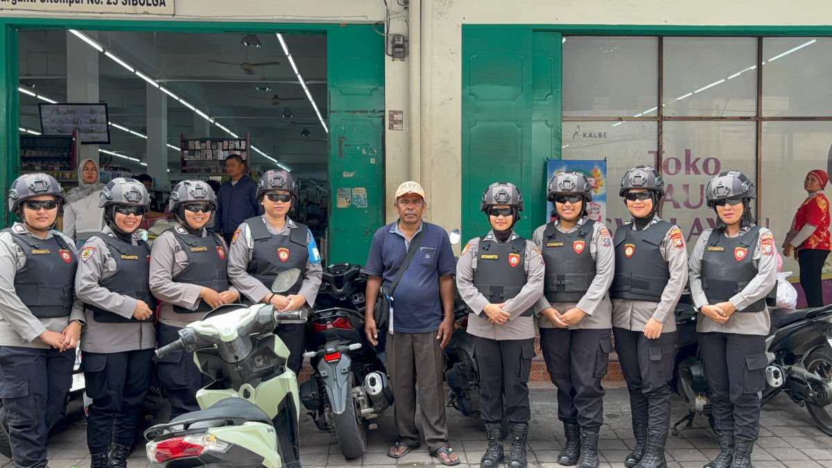 SIBOLGA ,indonesiaclik.com ll  Dalam Rangka Patroli Srikandi Putri Runduk Polres Sibolga, cegah Gannguan Kamtibmas di siang hari. Personil Polres Sibolga melibatkan Polwan (Polisi Wanita) Polres Sibolga melaksanakan Patroli dengan sasaran tempat keramaian, petugas Parkir, Pedagang, Pemukiman Warga, Pusat Keramaian Terminal Sibolga dan Jemaah Masjid yang hendak melaksanakan Sholat Jumat. Selain itu Patroli Srikandi Putri Runduk Polres Sibolga melaksanakan Patroli ke Masjid-Masjid yang melaksanakan Sholat Jumat di Kota Sibolga, kegiatan ini dilaksanakan saat Masyarakat berangkat dan melaksanakan Sholat Jumat di Masjid, pada hari Jumat (04/07/2025) siang sekira pukul 12.00 Wib.